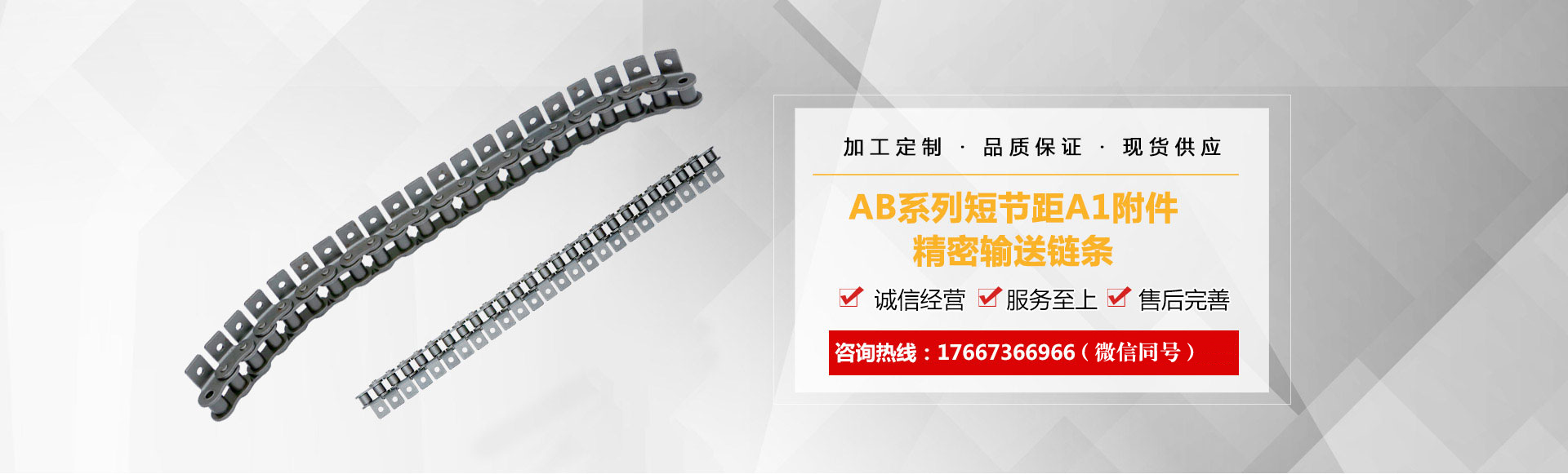 1、鏈條產品有各種不銹鋼、碳鋼輸送鏈條、雙節(jié)距輸送鏈條、空心銷軸鏈條、不銹鋼塑料平頂鏈、不銹鋼精密滾子鏈、特殊工礦輸送鏈、耐高溫輸送鏈條、非標鏈條、彎板非標鏈條、大節(jié)距輸送鏈條、各種鏈條用滾子(材質碳鋼、不銹鋼)等。